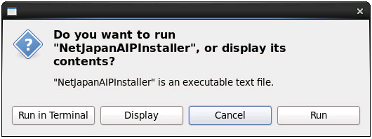 - Double-click on the installer(NetJapanAIPInataller)located in root directory on the product's media, and select [Run in Terminal].