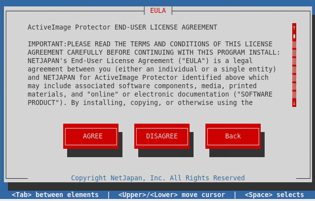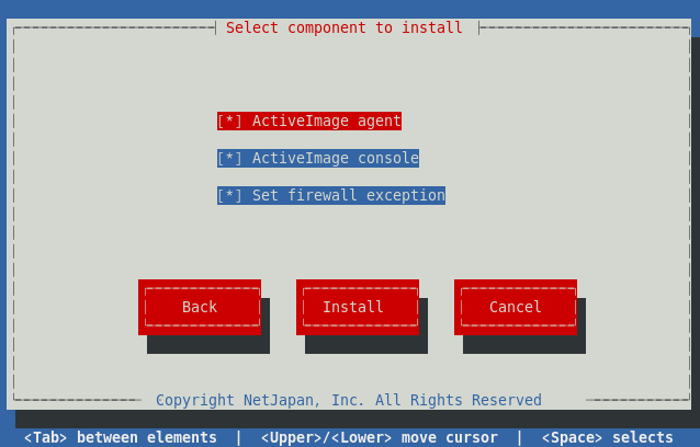 - The program is set up in "/opt/NetJapan" folder and configured to automatically start up ActiveImage Protector service when the system is booted up.