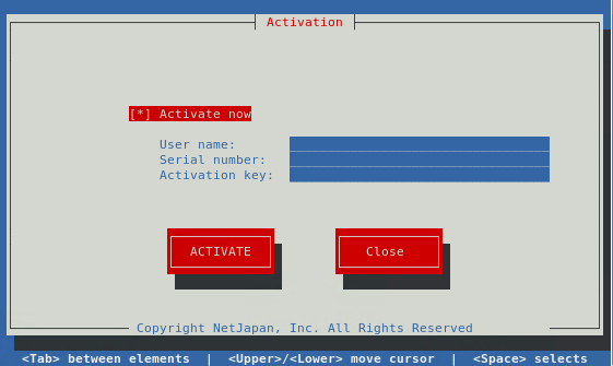 Enter User Name, serial number, activation key and select [ACTIVATE] to activate the product. If you press [Close] key without entering the activation key, ActiveImage Protector is launched in trial mode. Then, you will be allowed to evaluate ActiveImage Protector for 60 days.