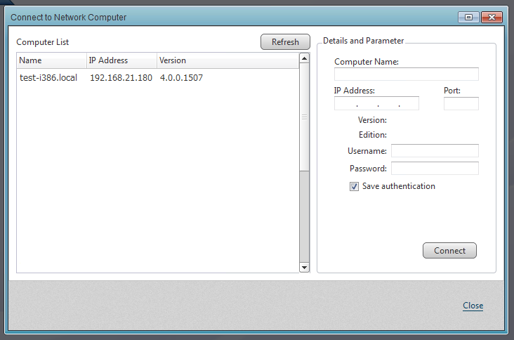- [Connect to Network Computer] dialog is displayed.
