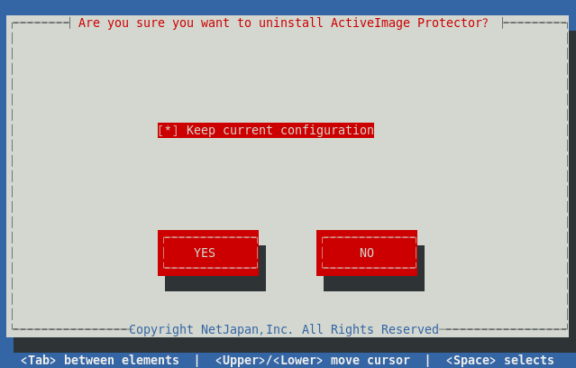 - If you want to keep the current settings and backup schedules after uninstallation of ActiveImage Protector, select [YES].