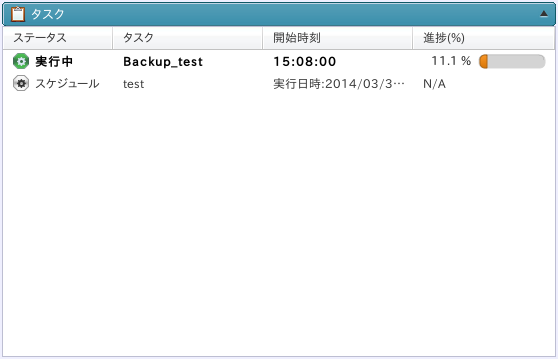現在実行中のタスク、およびキューされているタスクがリストで表示されます。