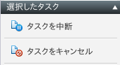 実行中のタスクをクリックすると操作ペインに以下の操作メニューが表示され、選択したタスクの中断とキャンセルができます。
