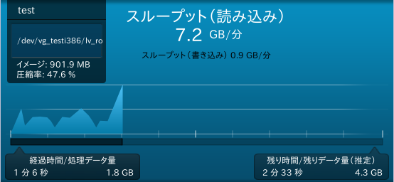処理開始から経過した時間と、処理したデータ量です。 |