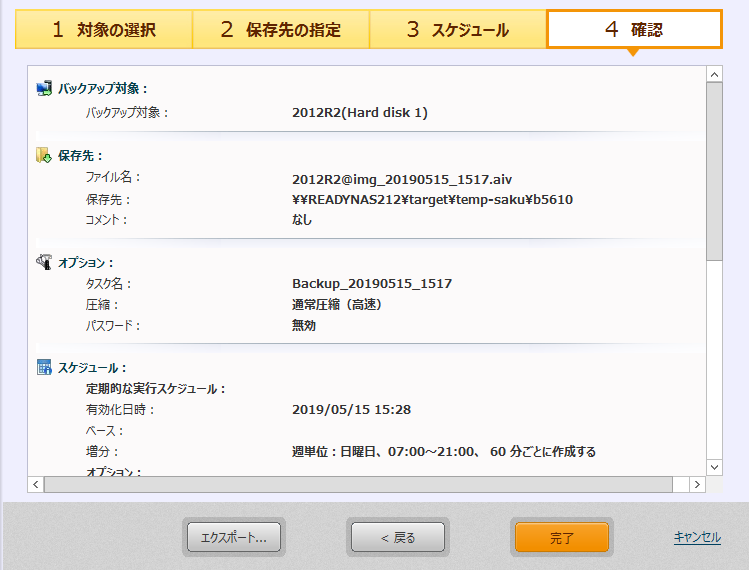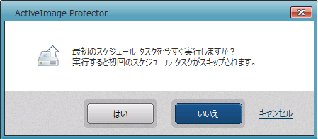[完了]をクリックするとスケジュールされた初回のバックアップを開始するかの確認ダイアログが表示されます。