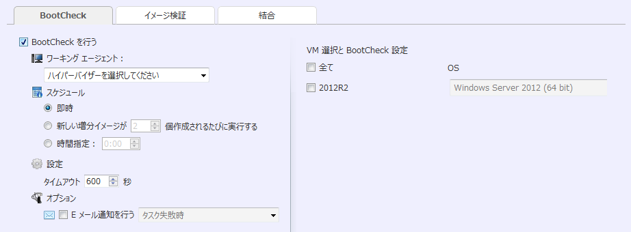 起動確認を行う VM とその OS を設定してください。