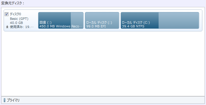 ローカル/ネットワーク共有フォルダーへ変換する場合は変換先を指定して変換する仮想ディスクの設定を行います。