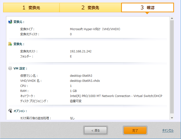 · Microsoft Hyper-V 向けの仮想マシンへ変換する場合