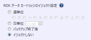 · 日単位:フルもしくは増分バックアップで指定時間にイジェクトされます。バックアップ中に指定時間になるとイジェクトは保留されバックアップが終わるとイジェクトされます。