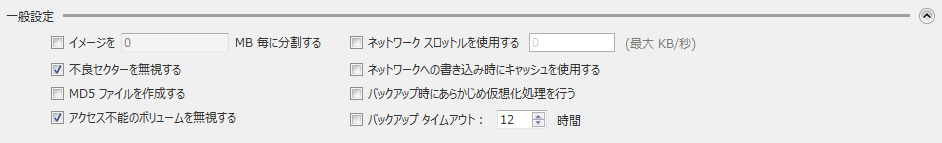 重複排除圧縮を行う場合は、このオプションを無効にしてバックアップされることをお勧めします。このオプションを無効にした場合、全てのディスクをまとめた一つのイメージファイルが作成されます(イメージファイルの末尾に"_md"という識別子がつきます)