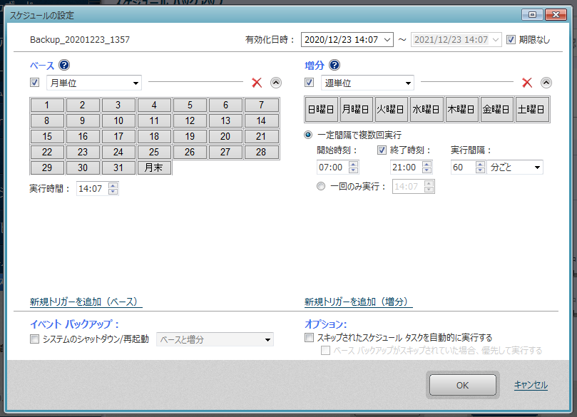 実行する日時を指定してください。ベース バックアップのみこのトリガーを設定できます。