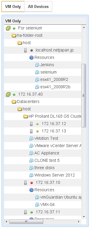 Registered hosts are displayed in hierarchy structure and confirms the current connection(s).